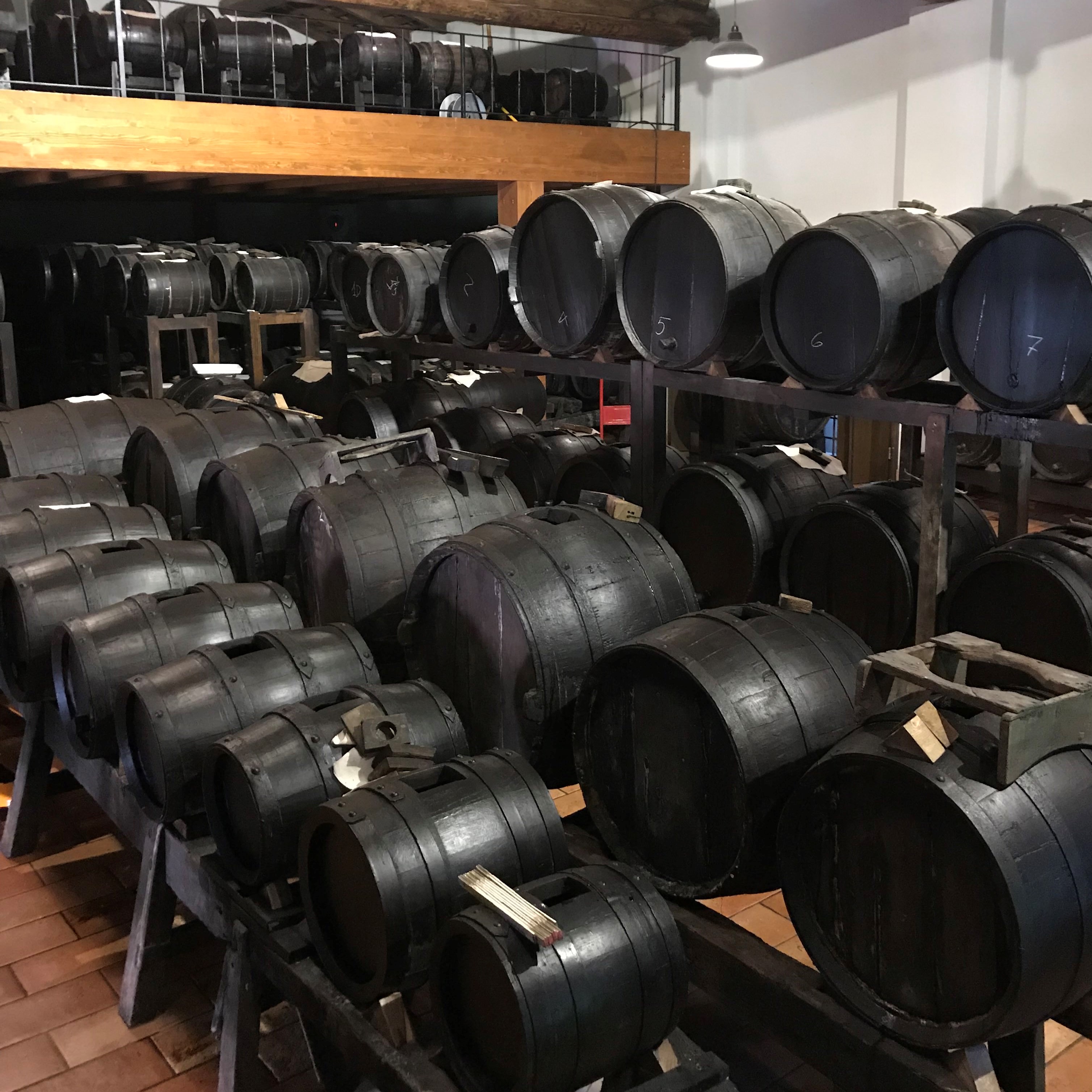 12 years in barrels, with the addition of aged balsamic vinegar extracted from a series of centuries old casks.